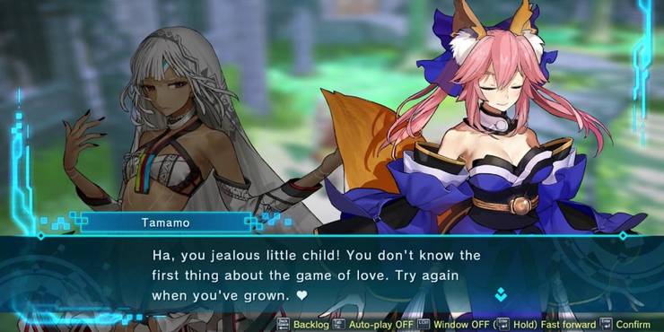 ทามาโมะนั้นเป็นตัวละครที่ตกหลุมรักใครสักคนได้ง่าย ใน Fate/Grand Order เธอนั้นไม่ต่างจากจากใน Fate/Extra ที่ได้หลงรักมาสเตอร์นั่นเอง