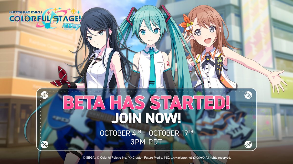 เมื่อช่วงค่ำของวันที่ 4 ตุลาคม ที่ผ่านมา ทางทีมงาน Hatsune Miku: Colorful Stage! ได้ทวิตรายละเอียดของการเปิดทดสอบตัวเกมในช่วง Open Beta Test พร้อมทั้งลิงก์สำหรับการโหลดตัวเกมในช่วงทดสอบ โดยมีรายละเอียดดังนี้